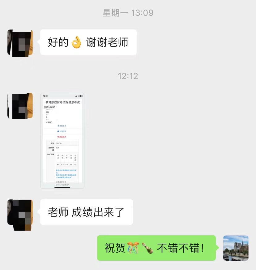 祝贺李同学雅思首考获得7.5分好成绩!!!