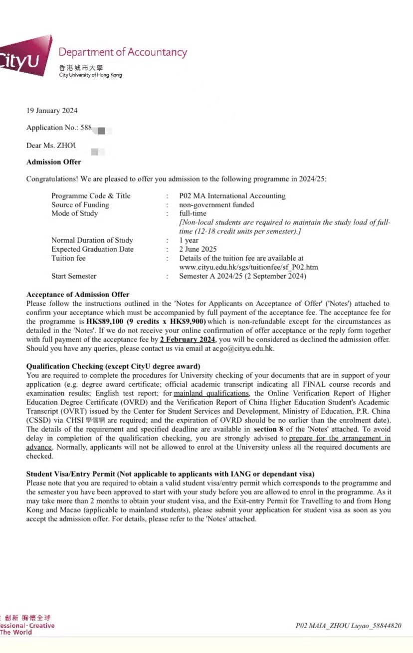 依达美又斩获香港城市大学国际会计硕士和英国曼彻斯特大学发展金融硕士录取通知书!!!